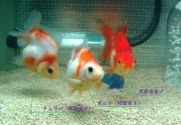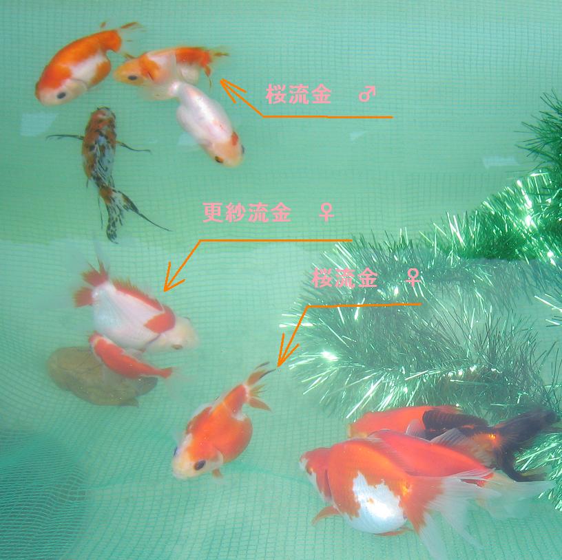 桜琉金のオスとメス