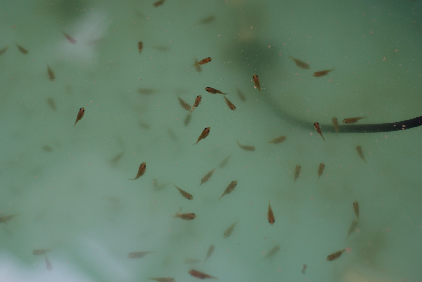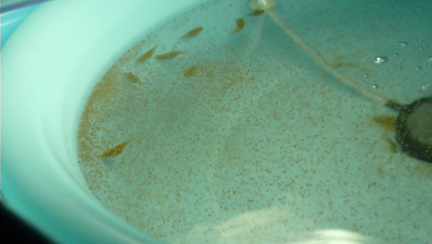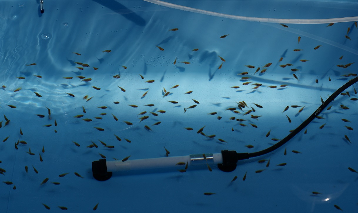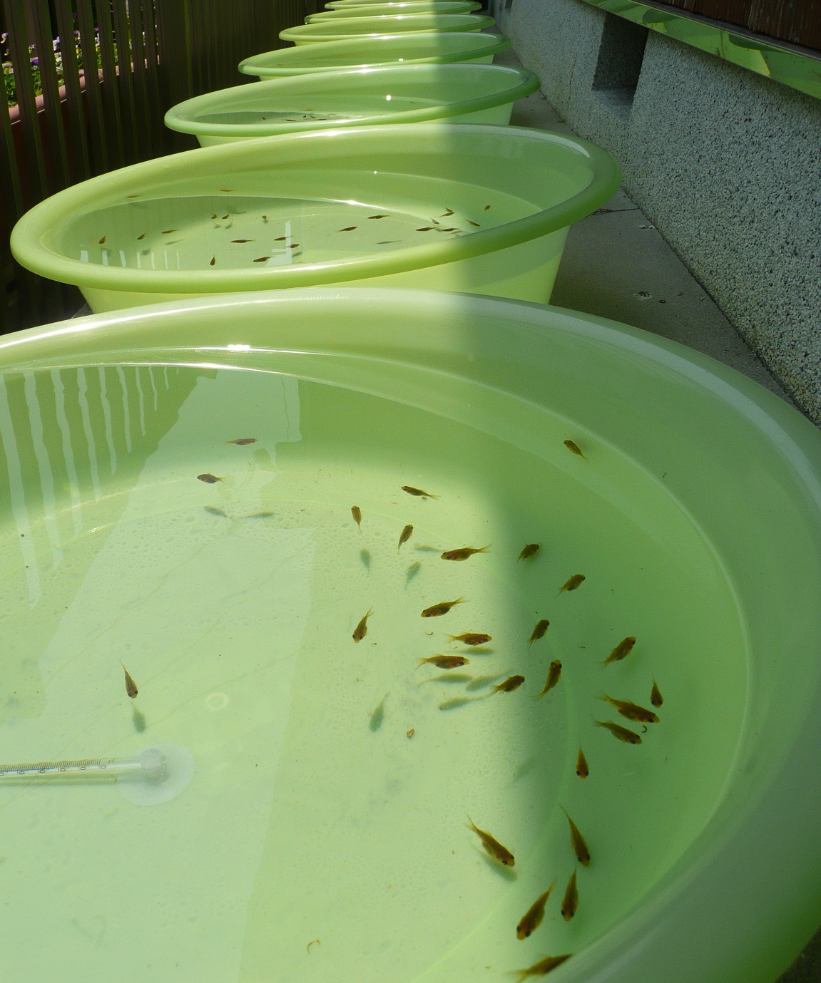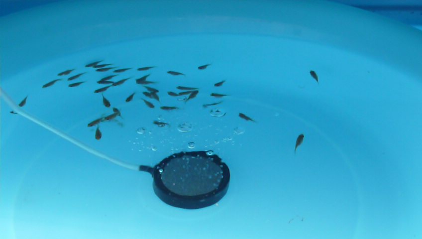風呂水槽に移動させた稚魚達 約40尾