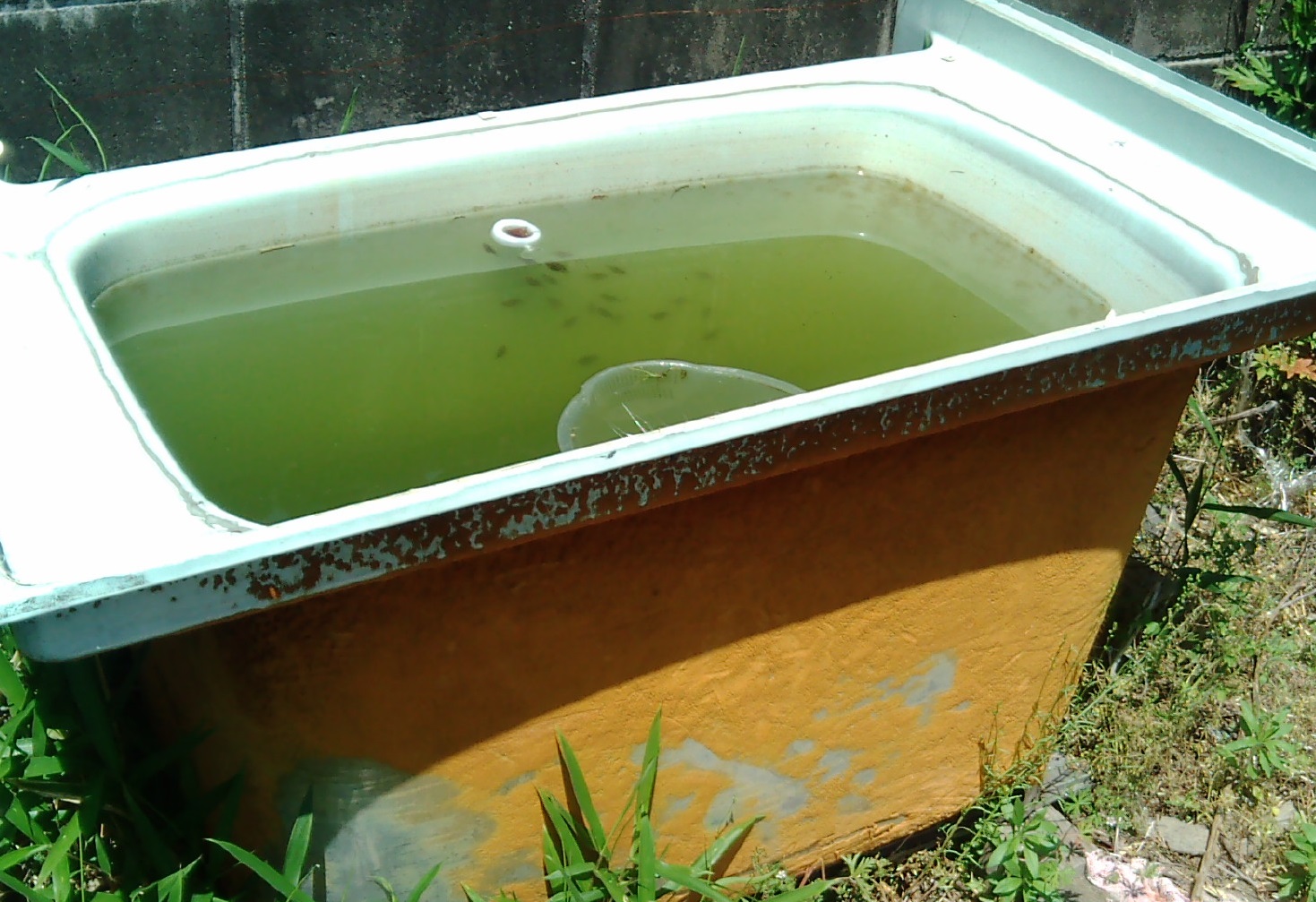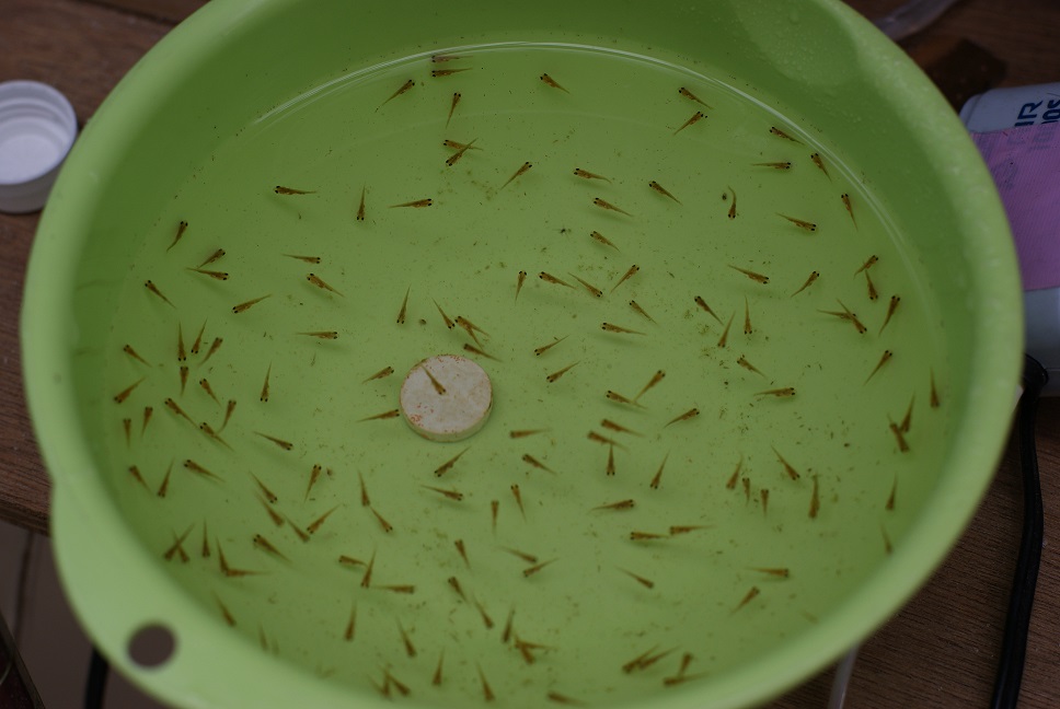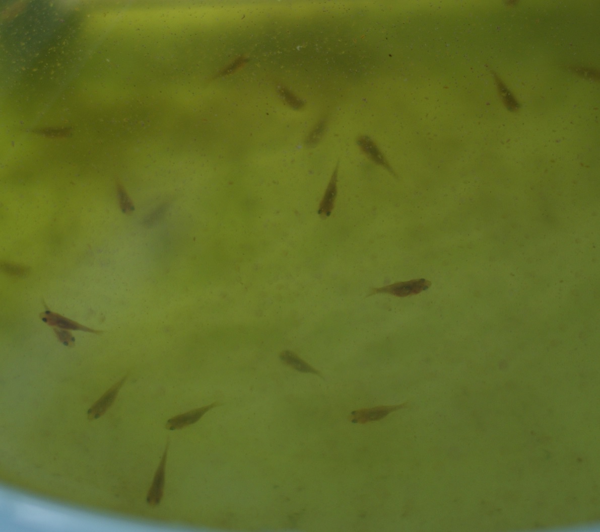 風呂水槽に移動させた稚魚達 約40尾